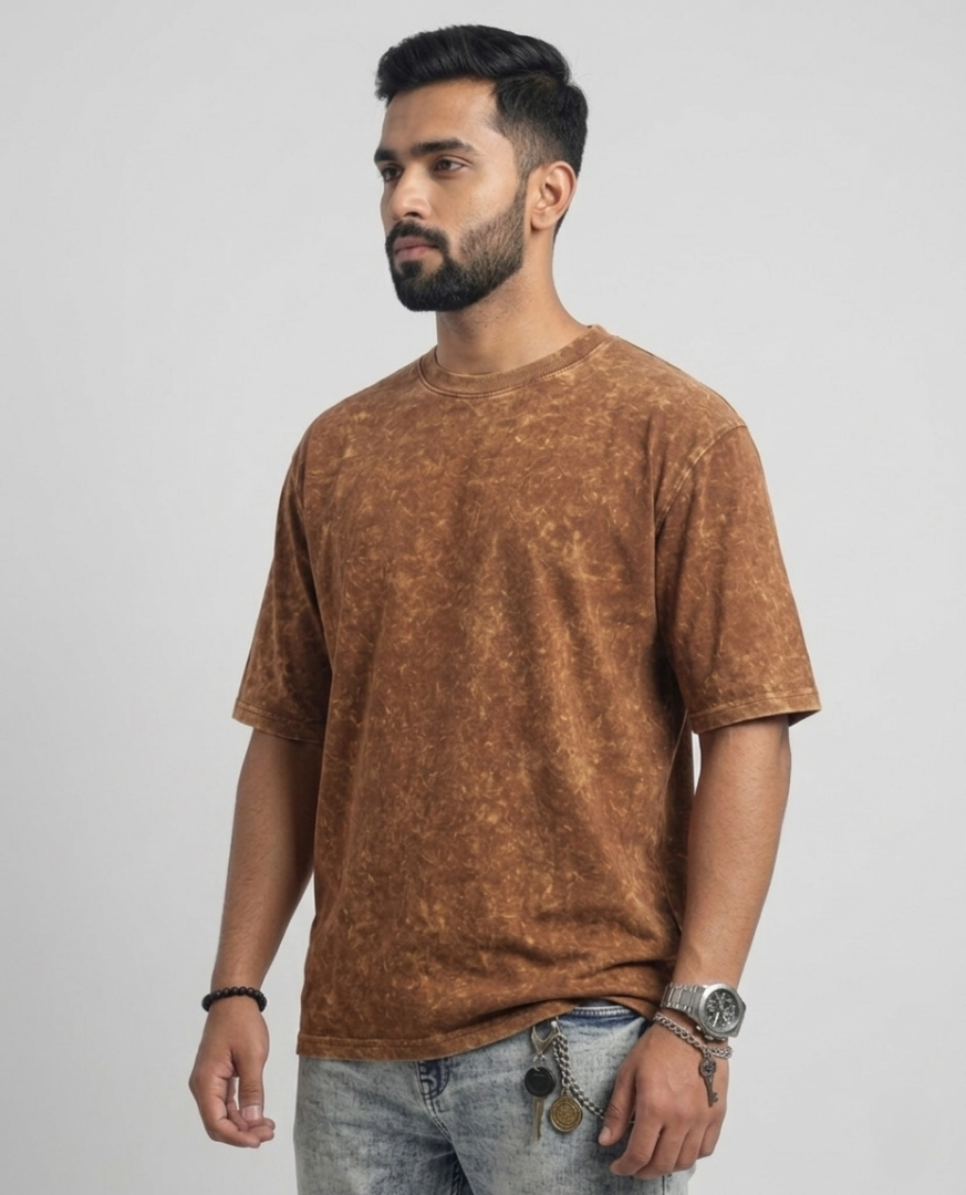 Men Oversized Printed/Acid Wash Brown T-Shirt