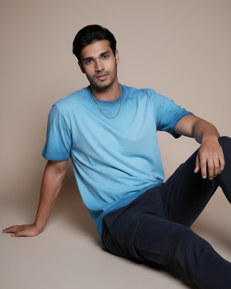 Blue Sun-Faded French Terry Oversized T-Shirt