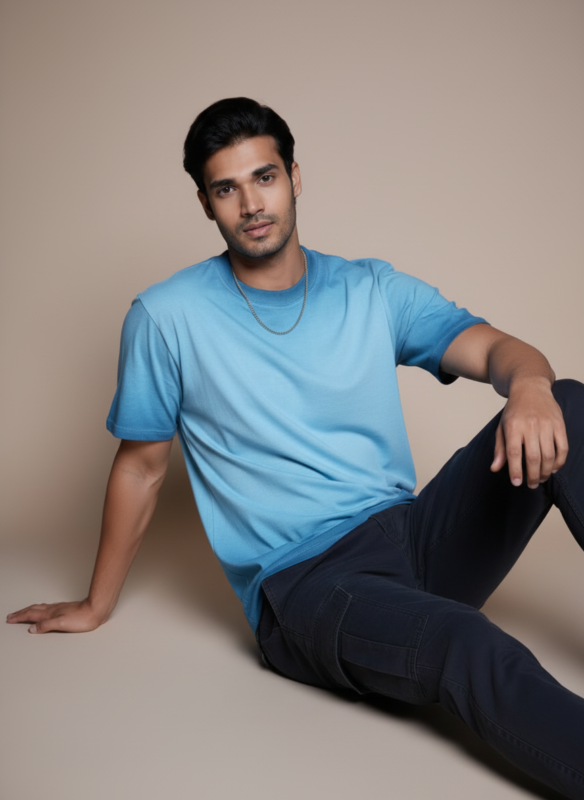Blue Sun-Faded French Terry Oversized T-Shirt