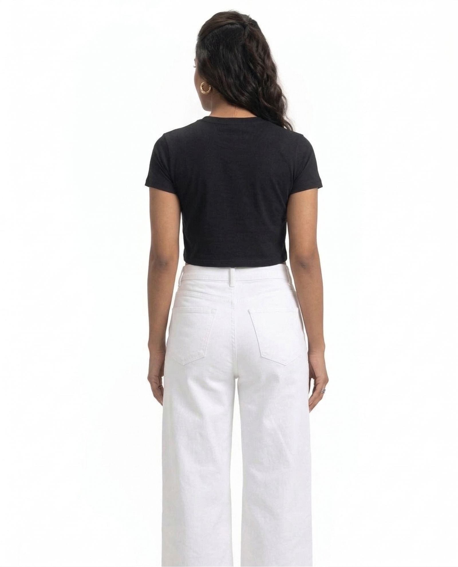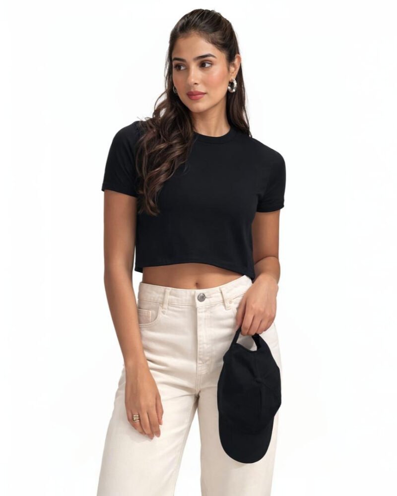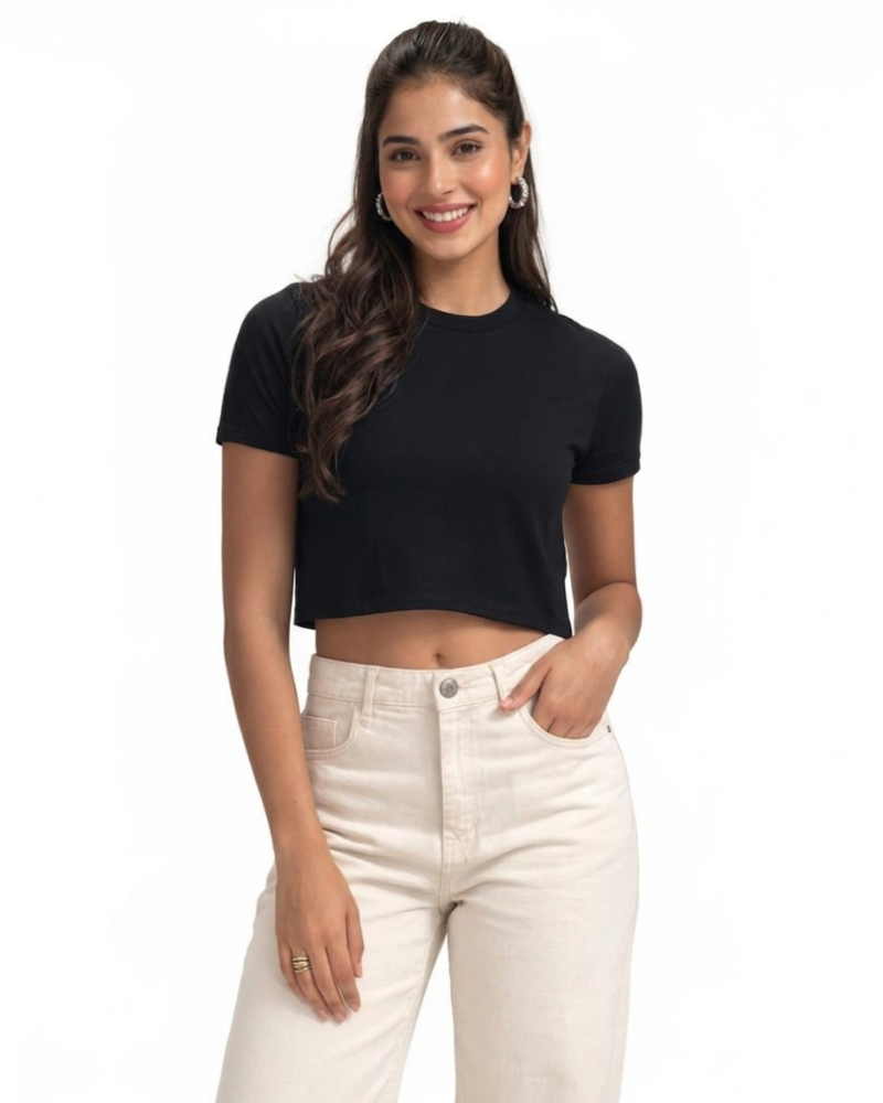 Classic Black Plain Crop Top for Women – Soft Stretch Everyday Fit