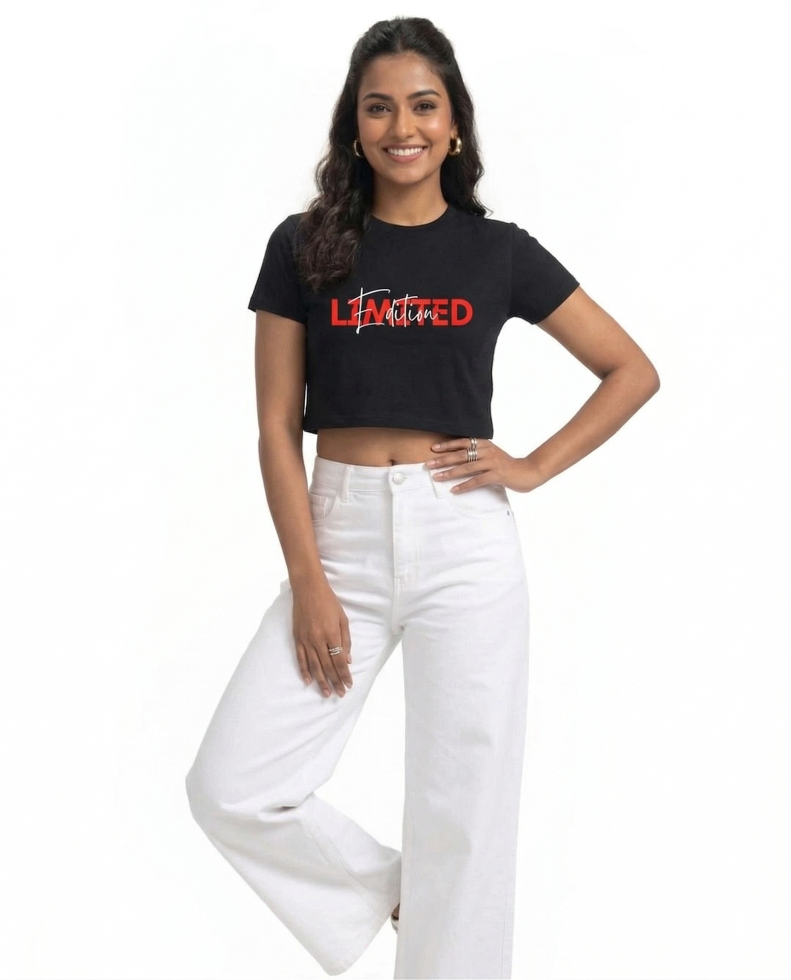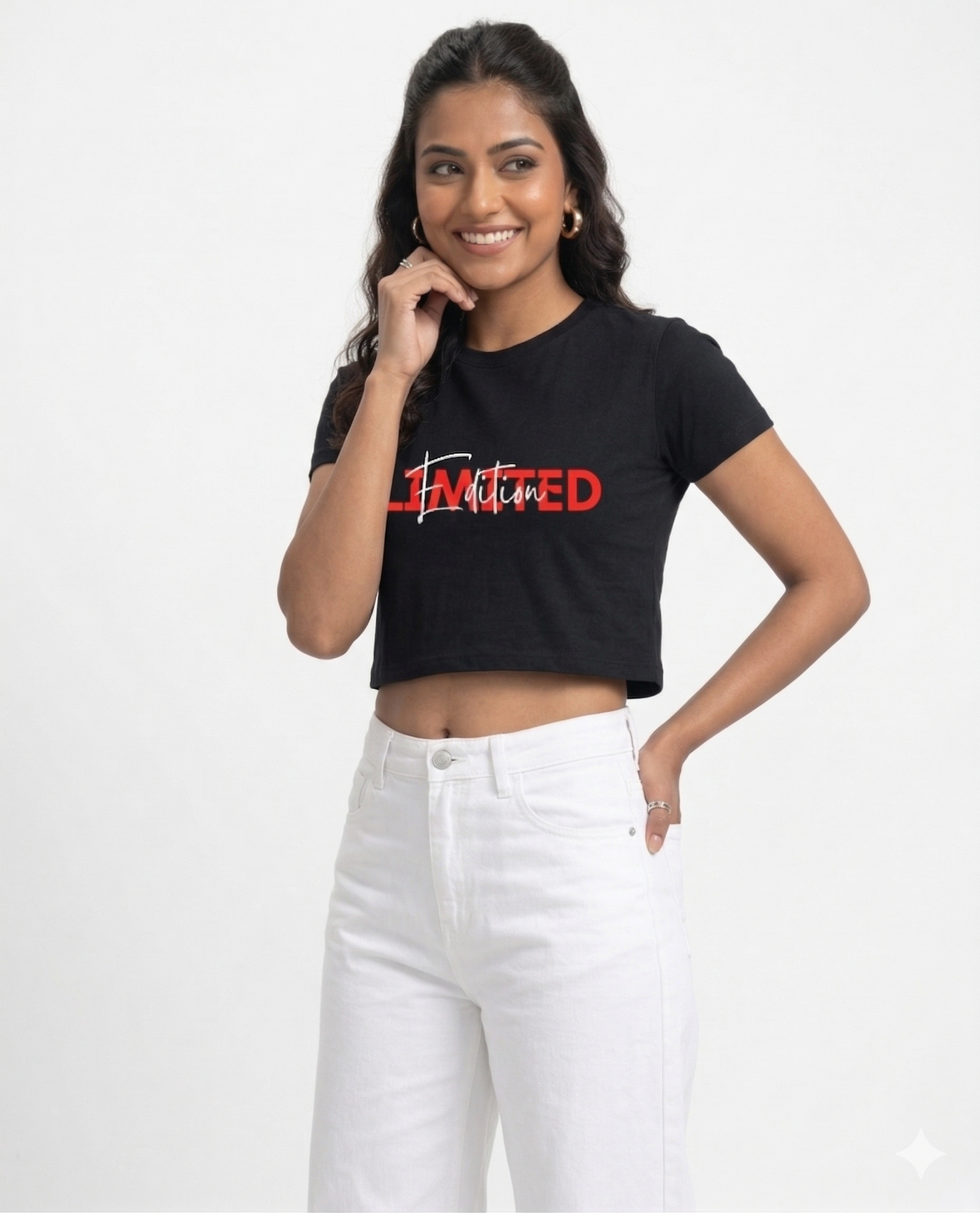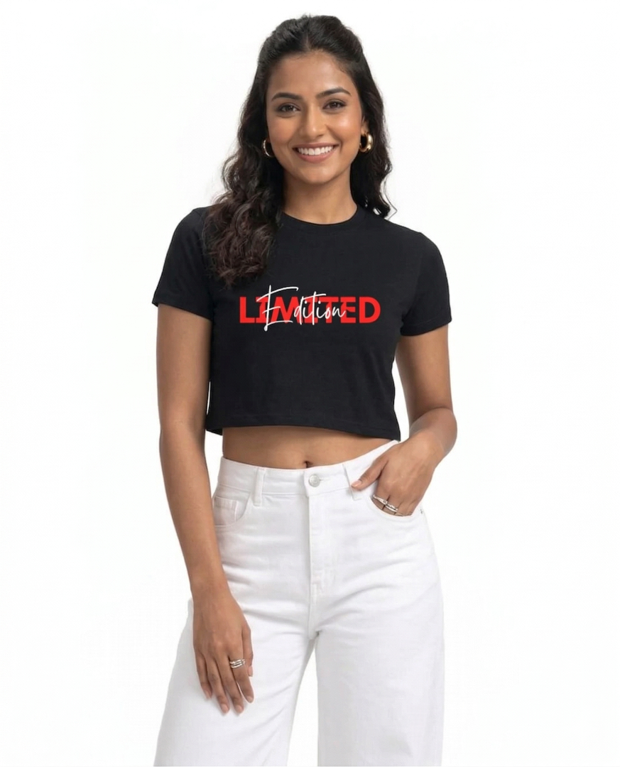 Make a definitive style statement with the Urban Edge Signature Crop. Designed for those who appreciate the intersection of minimalist fashion and bold typography, this tee features a unique dual-layered “Limited Edition” graphic in vibrant red and crisp white script.