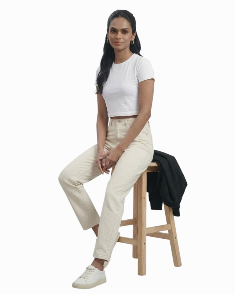 Women’s Solid White Crop Top – Slim Fit Casual Short Sleeve Cotton Crop T-Shirt