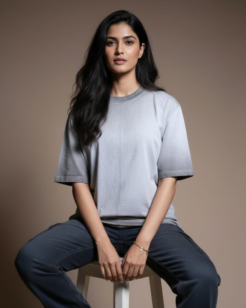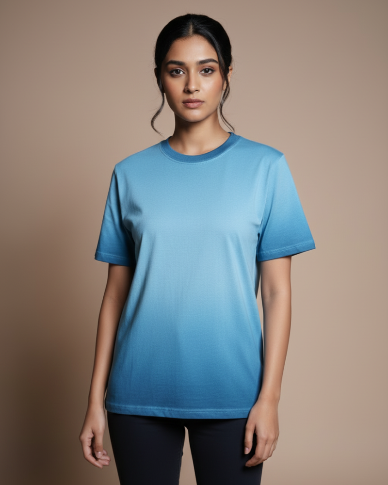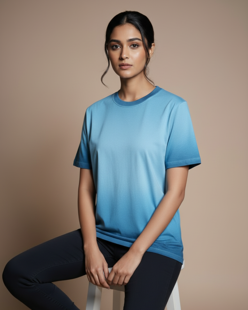 Women Blue Sun-Faded French Terry Oversized T-Shirt