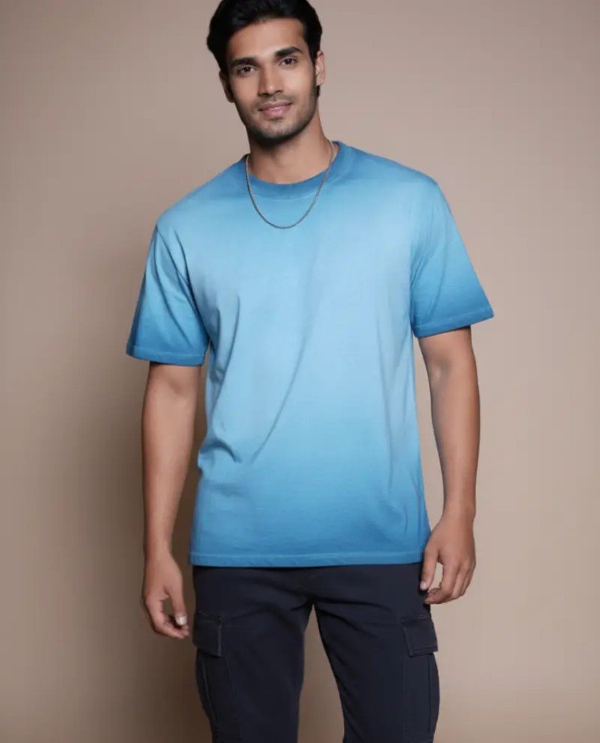 Blue Sun-Faded French Terry Oversized T-Shirt