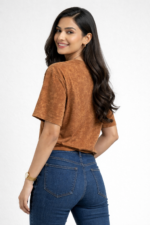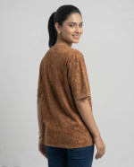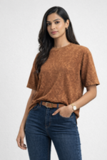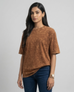 Designed for modern trendsetters, the relaxed oversized silhouette and drop-shoulder design deliver a laid-back yet stylish vibe. The textured fabric drapes comfortably, while the earthy brown shade makes it easy to style with black cargos, relaxed jeans, or casual shorts.