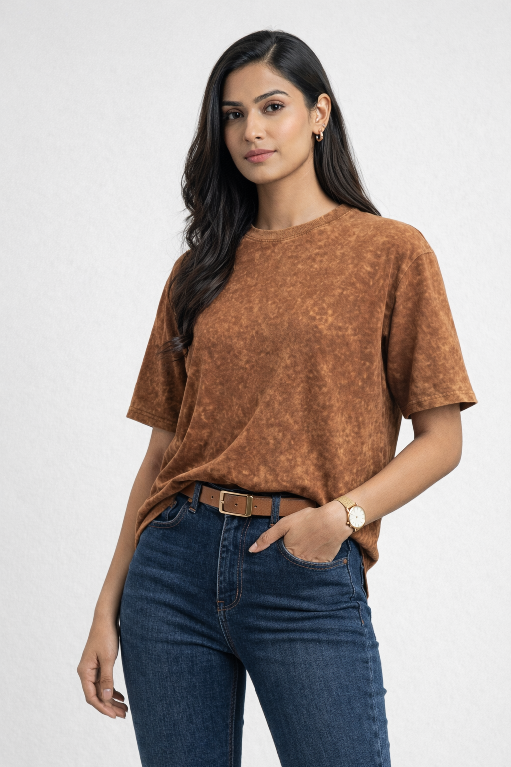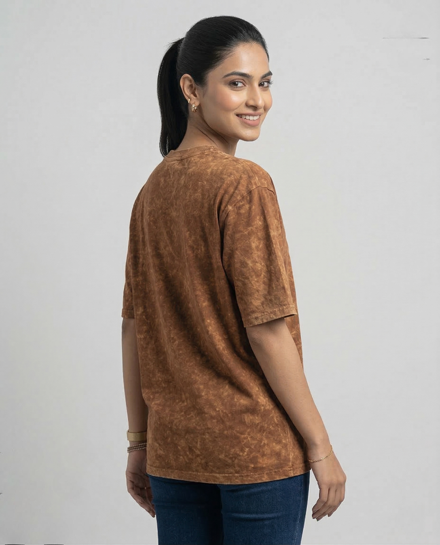 Women Oversized Printed / Acid Wash Brown T-Shirt