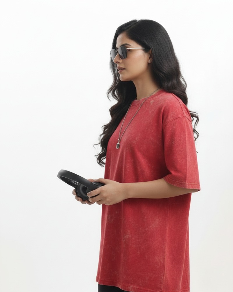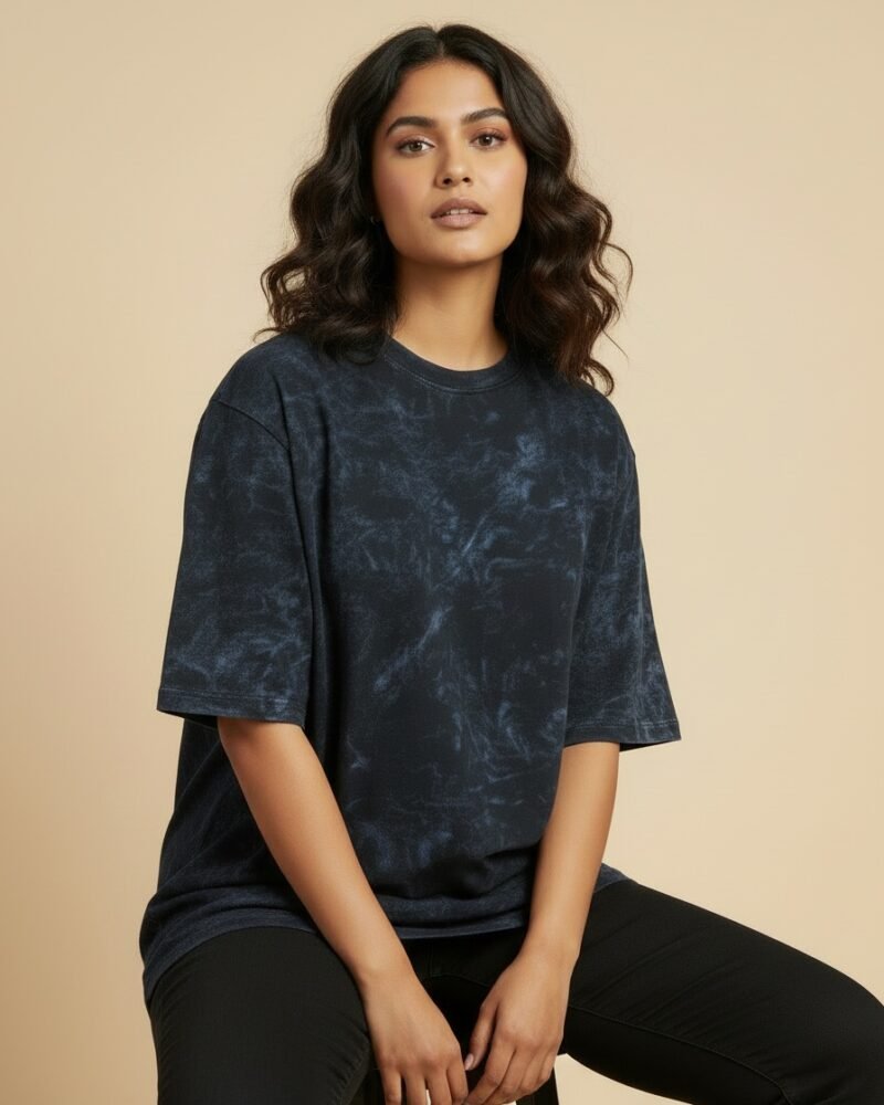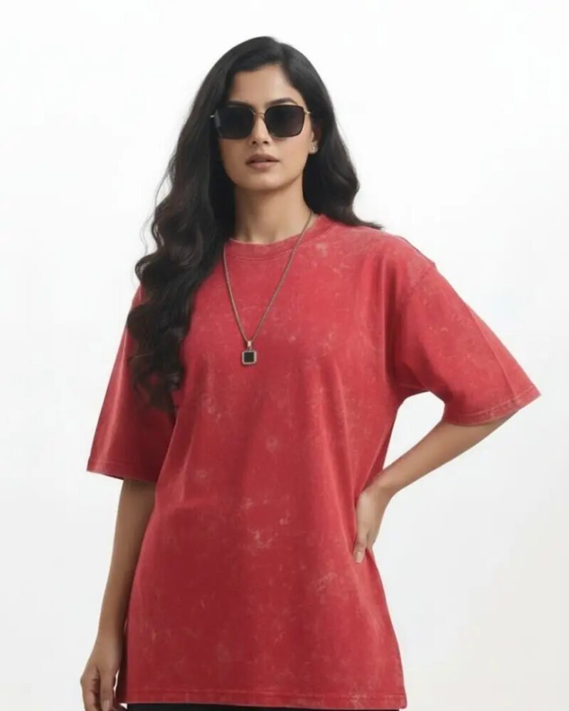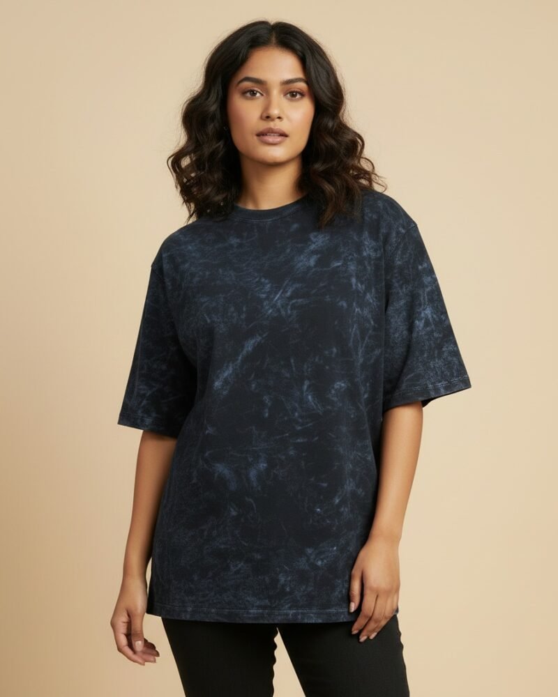 Women Oversized Printed/Textured Acid Wash Round Neck T-Shirt