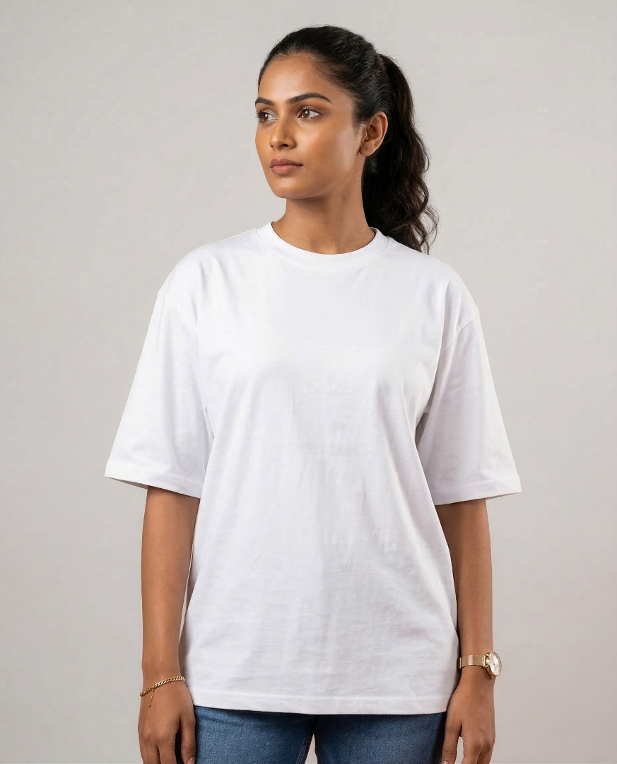 Women’s White Cotton Oversized T-Shirt | Drop Shoulder Streetwear Fit | Solid Plain White Tee