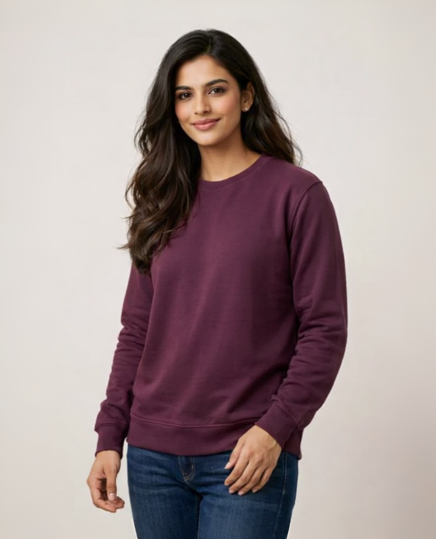Upgrade your everyday wardrobe with this Premium Burgundy Crewneck Sweatshirt for Women. Designed with a soft breathable fabric and a relaxed comfort fit, this sweatshirt delivers the perfect balance of style, warmth, and everyday versatility. Pair it effortlessly with jeans, joggers, or skirts for a modern casual look.
