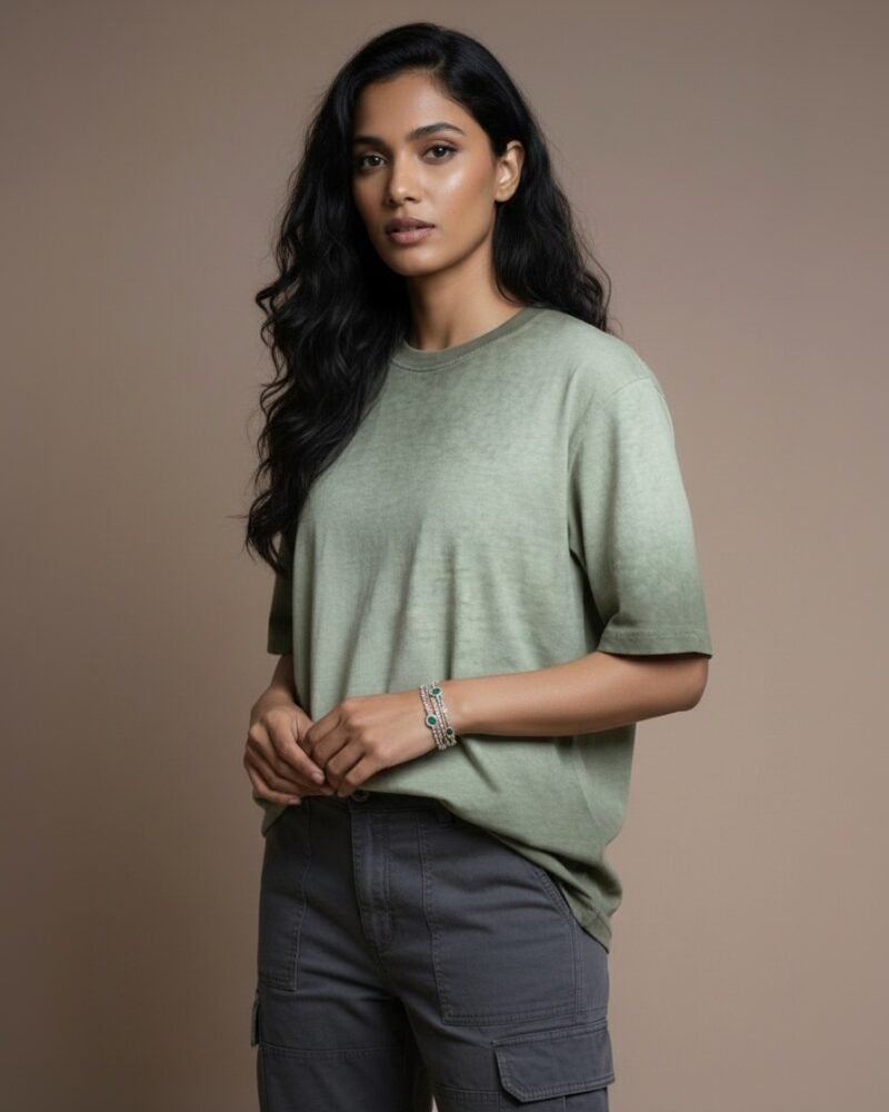 Women Green Sun Faded Oversized Tee