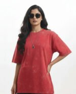 Make a statement with the Crimson Grit Acid-Wash Oversized Tee. This piece combines the raw energy of underground streetwear with premium comfort. The intense crimson base has been treated with a high-contrast acid wash, creating a unique, marbled “grit” effect that ensures no two shirts are exactly alike.