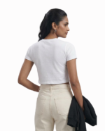 Stay stylish and comfortable with this trendy women’s white crop top, designed for everyday wear and effortless fashion. This crop t-shirt features a modern slim fit silhouette that enhances your natural shape while maintaining comfort throughout the day.